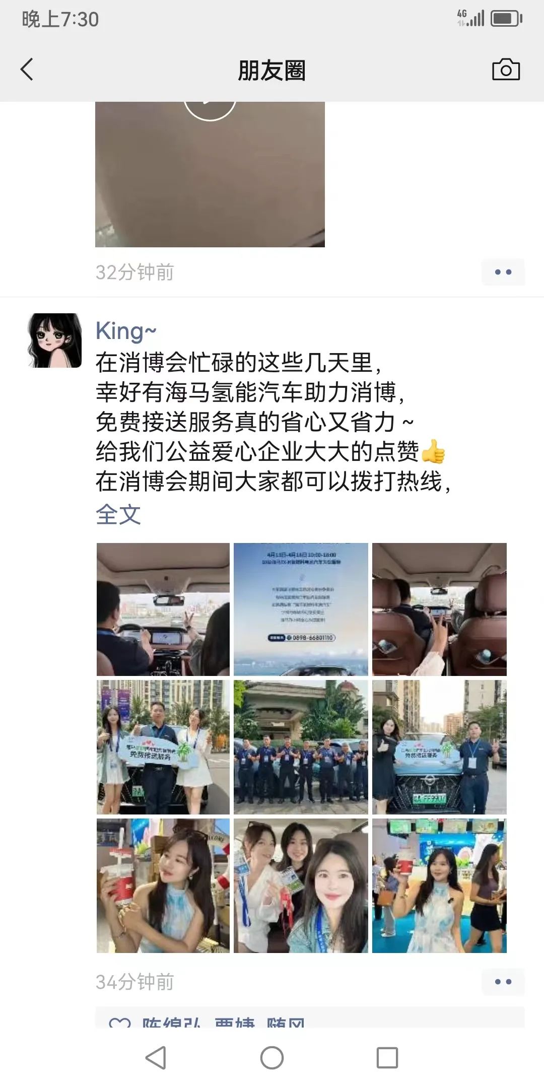 接四海來客,送八方貴賓。海馬氫能服務團隊在消博會期間的免費接送獲得了觀眾們的一致好評,紛紛為海馬氫能汽車點贊,同時還分享給了自己的親朋好友,希望大家有機會可以多多體驗海馬氫能汽車的服務。
