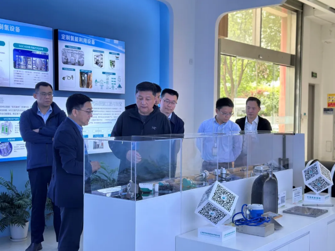 張寧總經理一行先后參觀了舜華新能源氫能展廳和加氫站裝備生產車間,詳細了解了公司發展歷程、產品特點、技術優勢和市場布局,并在過程中就張寧總經理關注的70MPa、制氫設備、制加氫一體站等業務國內的發展情況進行了深入的交流和探討。張寧總經理一行對舜華新能源一直致力于氫能技術的研發和應用、并在行業內取得的成果和領先地位表示高度認可,希望雙方保持持續交流,在氫能領域開展合作,共同推動綠色能源的發展。