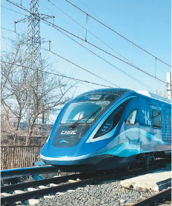 中國首列氫能源市域列車在位于長春的中車長客試驗線進行運行試驗?! ⌒氯A社發