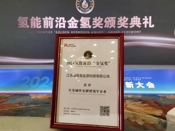 CIEC 2024大會組委會專家團隊通過聚焦技術創新、產品性能、市場影響和行業領導力等方面綜合評定,在2024第二屆國際電解槽技術創新大會上為雙良氫能頒發了氫能前沿“金氫獎”,被評為年度堿性電解槽領軍企業。