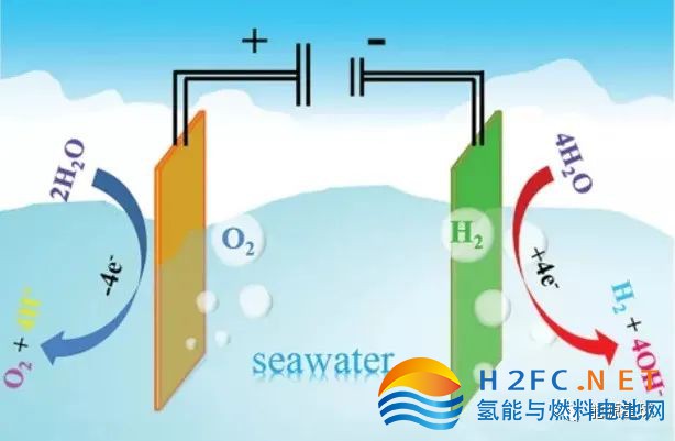 海水電解反應包括陰極析氫反應(Hydrogen Evolution Reaction,HER)和陽極析氧反應(Oxygen Evolution Reaction,OER)兩個半反應(圖2:電解海水制氫)。