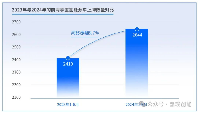 2024年上半年國內燃料電池汽車市場仍呈穩步增長趨勢,據統計,國內燃料電池汽車上牌銷量合計達到2644輛,同比增長9.7%。