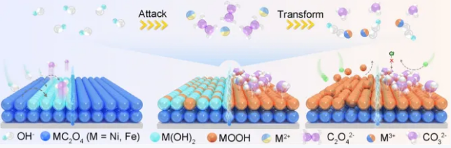 圖3 原位碳氧陰離子自轉化策略用于堿性海水氧化
