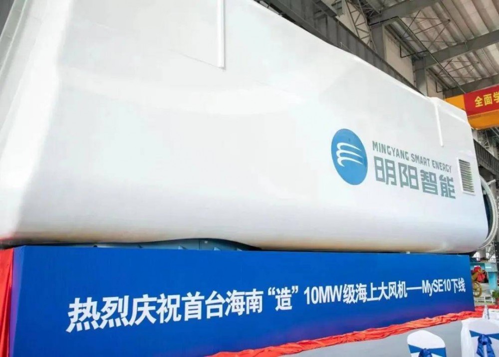 同步下線的還有首臺海南制造的10MW海上大兆瓦風電機組。該機組采用先進的氣動翼形設計葉片,配置氣動套件技術,達到高氣動效率。240m+超大葉輪直徑,掃風面積達45240㎡,相當于6.5個標準足球場大小,憑借可靠性設計、優異的抗臺風性能、富有競爭力的發電量和卓越的經濟性,領跑海上風電平價的新征程。