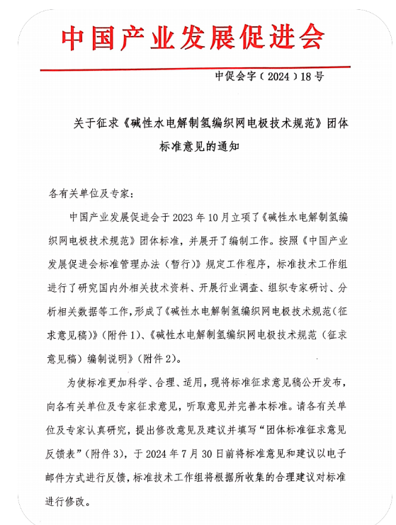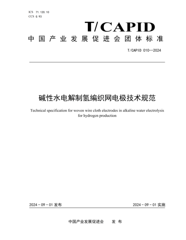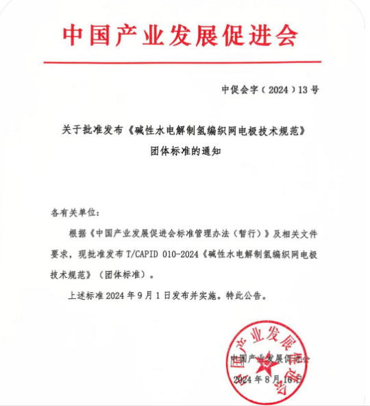 由中國產業發展促進會提出,由中國產業發展促進會氫能分會歸口管理,保時來新材料科技(蘇州)有限公司牽頭,國家電投集團科學技術研究院有限公司、三一氫能有限公司、上海氫器時代科技有限公司、考克利爾競立(蘇州)氫能科技有限公司、中國產業發展促進會氫能分會、天津市大陸制氫設備有限公司、中石化石油化工科學研究院有限公司、寧夏寶豐能源集團股份有限公司、北京中電豐業技術開發有限公司、中船(邯鄲)派瑞氫能科技有限公司、陽光氫能科技有限公司、中石油深圳新能源研究院有限公司、西安隆基氫能科技有限公司、中國華能集團公司、深能北方能源控股有限公司、蘇州希倍優氫能源科技有限公司、南通安思卓新能源有限公司、北京電力設備總廠有限公司、江蘇天合元氫科技有限公司、中國三峽新能源(集團)股份有限公司、三峽科技有限責任公司、中國大唐集團科學技術研究總院有限公司華北電力試驗研究院、鄂爾多斯市瀚峽新能源有限公司、西安航天動力研究所、青島綠色發展研究院有限公司、明陽智慧能源集團股份公司、中車株洲電力機車研究所有限公司、深圳市瑞麟科技有限公司、清華四川能源互聯網研究院、航天長征化學工程股份有限公司、內蒙古霍煤鴻駿鋁電有限責任公司電力分公司、清華大學、蘇州大學、北京化工大學、華北電力大學、南京航空航天大學等單位參與編寫的《堿性水電解制氫編織網電極技術規范》近日獲得批準發布。
