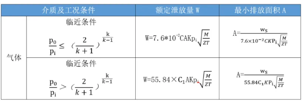 表1 額定泄放量和泄放面積計算公式