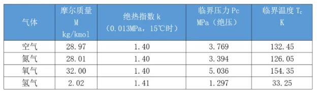 K—泄放裝置的泄放系數;k—氣體絕熱系數,查表3;M—氣體的摩爾質量,kg/kmol;P0—泄放裝置出口側壓力(絕壓),MPa;Pi—泄放裝置的泄放壓力(絕壓),包括設計壓力和超壓限度兩部分,MPa;Z—氣體的壓縮系數,對于空氣Z=1.0;T—泄放裝置泄放溫度;WS—容器的安全泄放量,Kg/h。
