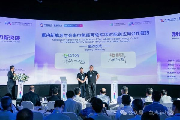 本次論壇中,北京氫冉新能源科技有限公司與會來電簽訂氫能兩輪車即時配送應用合作,雙方將結合各自于氫能源兩輪車及即時配送領域優秀經驗,于2025年完成2000輛氫能外賣兩輪車應用落地,推動氫能兩輪車商業化進程,并為即時配送、物流外賣等行業提供更加環保、高效的解決方案,引領行業向綠色、低碳方向發展。