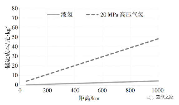 在長距離輸運情況下, 液氫技術路線的綜合成本低于高壓氣態儲氫技術路線, 液氫技術路線投資大和能耗高的問題,可通過設備自主化、產能規模化,以及液氫運輸成本對距離的不敏感性,并結合新能源電氫體系予以解決。