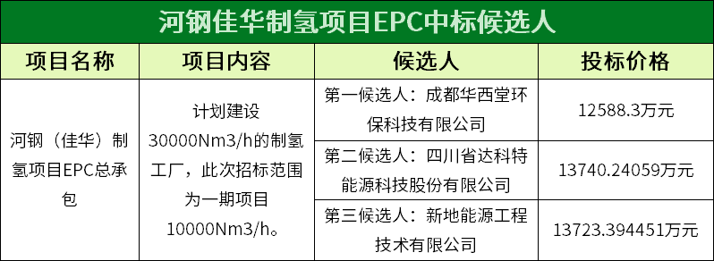12月5日,河鋼(佳華)制氫項目EPC總承包中標候選人結果發布。