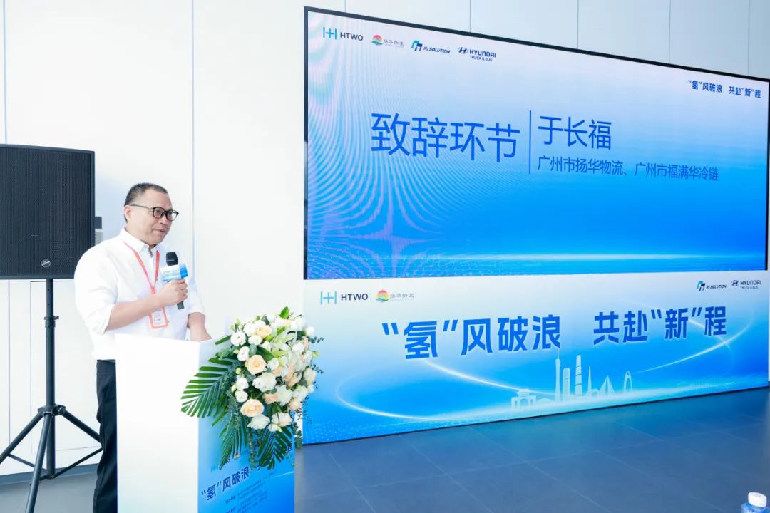 揚華物流董事長于長福在致詞中強調:“選擇氫能源汽車,是揚華物流響應國家‘雙碳’戰略的必然選擇。我們尤其看中氫燃料電池冷藏車長續航里程的顯著優勢,它能完美覆蓋我們在珠三角地區的密集運輸需求,讓司機徹底告別續航焦慮。揚華物流將以此次合作為起點,加速冷鏈物流的低碳轉型,賦能綠色物流發展。”