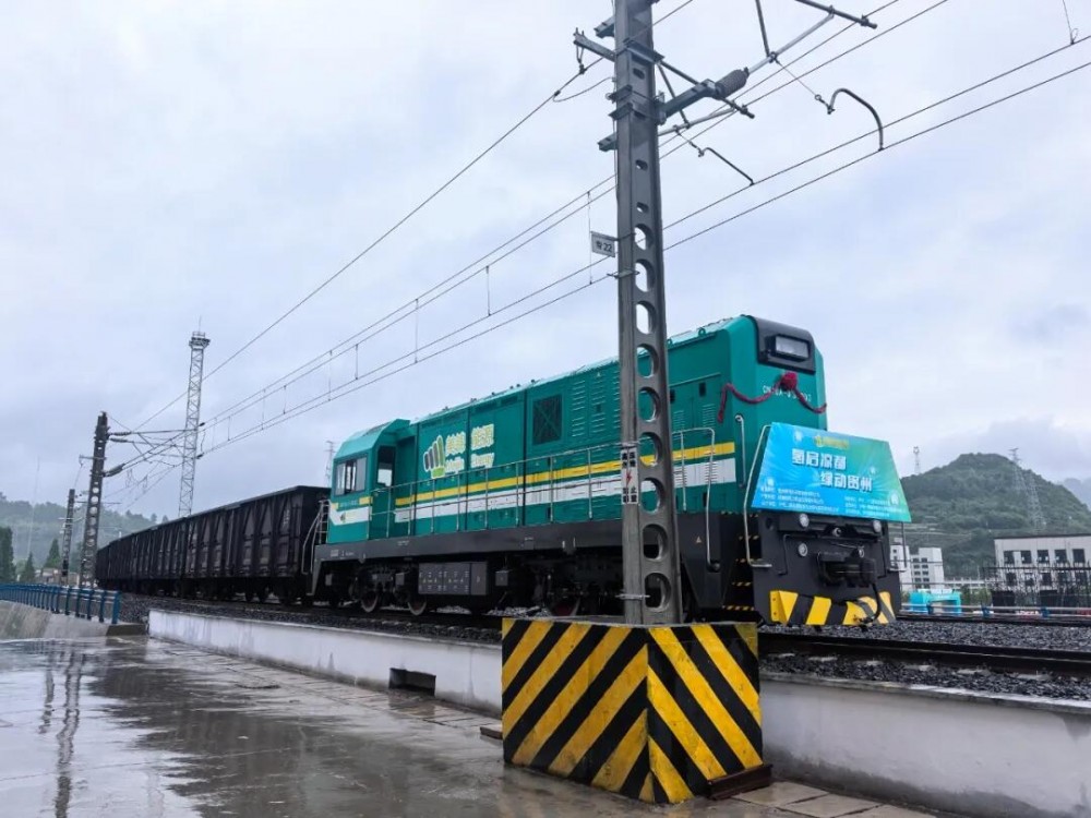 ▲全國首臺商用氫能機車頭在貴州六盤水試運行