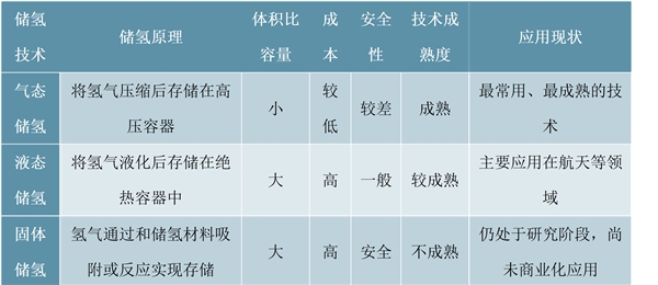 表:不同儲(chǔ)氫技術(shù)對(duì)比