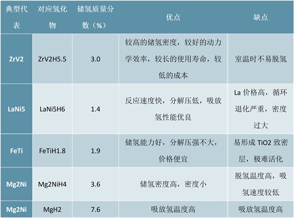 幾種金屬儲(chǔ)氫材料對(duì)比