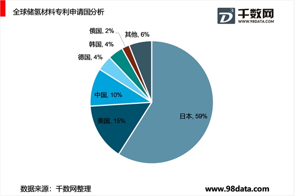 儲(chǔ)氫材料專利主要集中在稀土系產(chǎn)品,技術(shù)主要集中在日本。從材料類型看,稀土系專利數(shù)量遙遙領(lǐng)先,全球申請(qǐng)專利數(shù)高達(dá)1300件,是全球研發(fā)重點(diǎn)。從申請(qǐng)國家看,日本申請(qǐng)的專利數(shù)占比高達(dá)59%。我國占比10%,排名第三,但是和日本還存在較大差距。