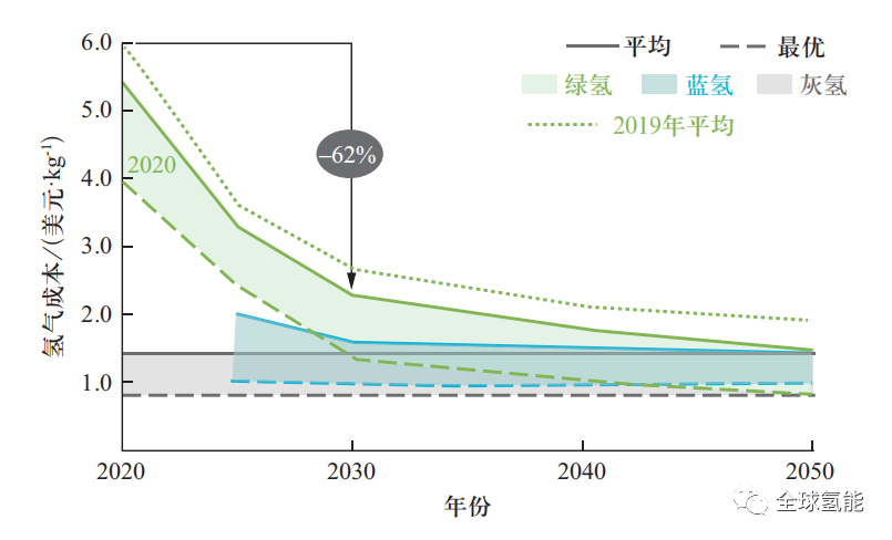 圖 4 2020—2050年期間綠氫成本變化趨勢