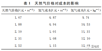 表1測算 的 是 一 套90000m3/h天然 氣 制 氫裝置制氫成本[7]。由于天然氣同時作為原料和供熱燃料,占制氫成本的87.1%,因此天然氣價格極大影 響 氫 氣 成 本。當 天 然 氣 價 格 為 1.88 元/m3時,制 氫 成 本 為 10.53 元/kg;當天然氣價格為2.52元/m3 時,制氫 成 本 為12.88元/kg。考慮 到燃料電池汽車用 氫 氣 純 度 更 高,需 要 進 一 步 提 純天然氣 制 取 的 氫 氣。目 前 提 純 車 用 氫 氣 主 要 采用 PSA 法,成 本 為 3~7 元/kg。因 此,當 天 然 氣價格為1.88元/m3 時,制氫成本約為15.53元/kg;當天 然 氣 價 格 為 2.52 元/m3 時,制 氫 成 本 約 為17.88元/kg。