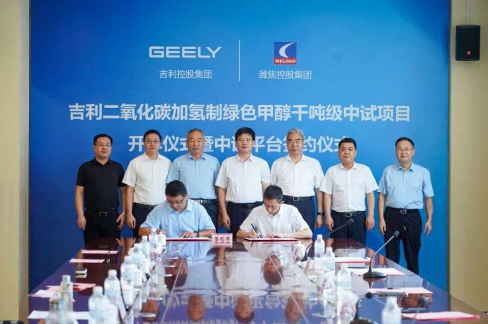 儀式上,吉利創新中心與濰焦集團中科綠碳科簽署合作協議,雙方聯合成立“綠色甲醇中試平臺”,通過合作共同推進雙方中試基地的建設與運營,實現科研成果的轉化和產業化落地,提升合作雙方的運營效果和市場競爭力。