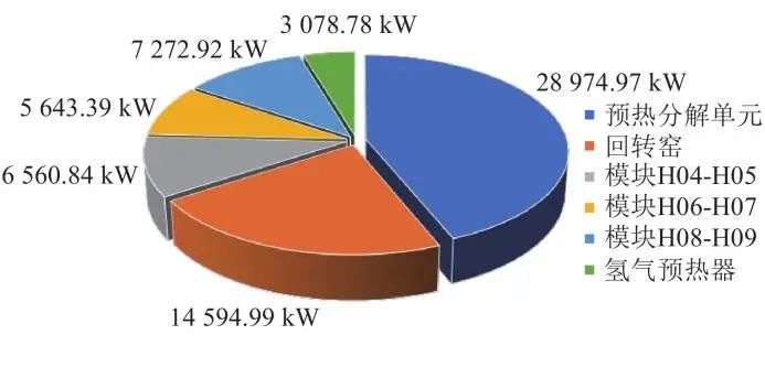 圖3 基于石灰石加氫制備CaO的低碳水泥生產工藝的?損分布