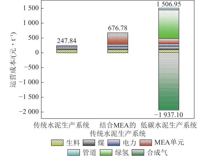 (3)經濟分析表明,合成氣的高利潤可以抵消綠氫帶來的高成本,并實現430.15元/噸熟料的凈利潤。當綠氫成本低于2.28元/立方米時,低碳水泥生產系統的綜合成本低于傳統水泥生產系統。