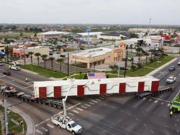 此次運輸的貨物規格堪稱 “巨無霸”:其中一件長34.57米,寬4.32米,總重108噸。僅在美國境內的運輸環節,就需協調19家機構審批,涉及道路臨時封閉、警方全程護航,以及132條架空電線的臨時抬升。僅最終段的運輸方案規劃就耗時四個月,可見跨國超大件物流的綜合性、復雜性。
