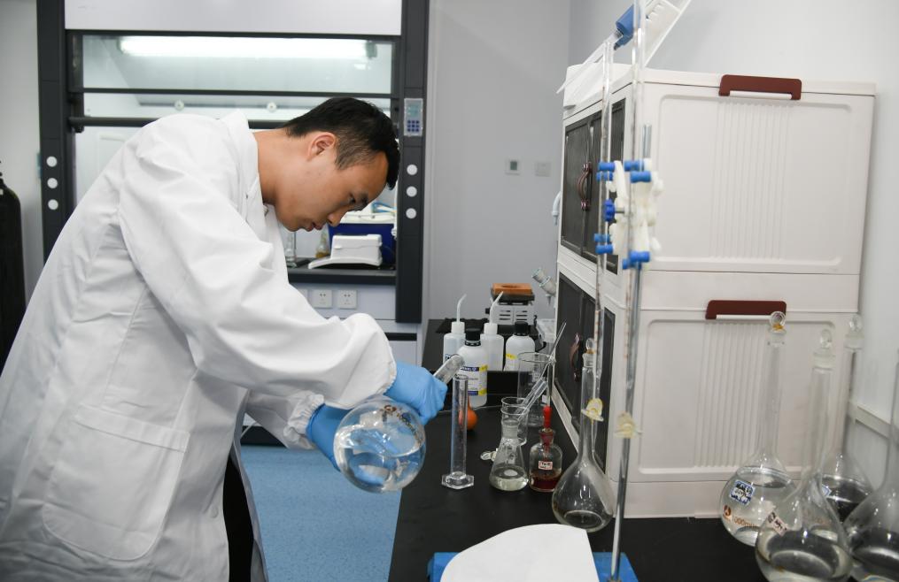 技術(shù)人員在西安一九零八新能源科技有限公司進(jìn)行實(shí)驗(yàn)。 新華社記者張博文 攝