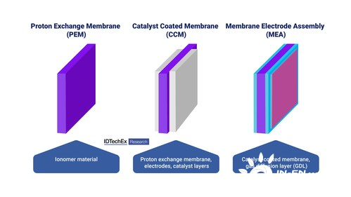 CCMs是一種具有集成催化層的膜材料。這種CCM通常夾在氣體擴散層(GDL)之間,以創建一個完全集成的組件,稱為膜電極組件(MEA)。在本文中,IDTechEx將介紹催化材料本身的發展趨勢。