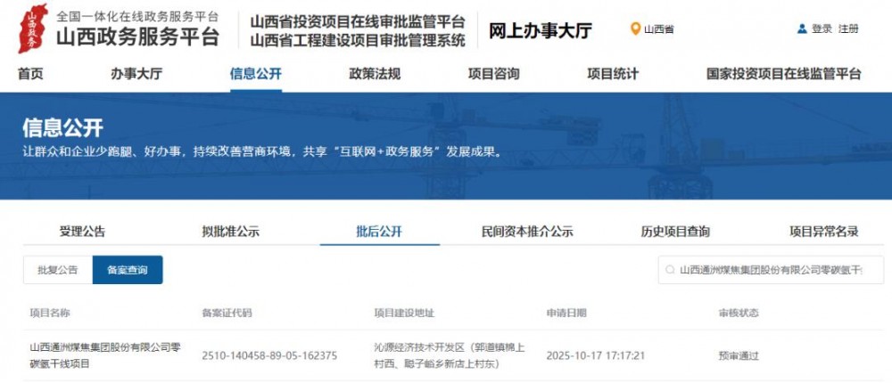 近日,山西通洲煤焦集團股份有限公司零碳氫干線項目備案預審通過。