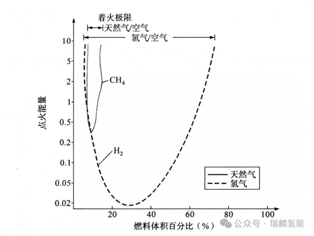 氫氣的爆炸范圍較寬,其爆炸下限為13%~18.3%(空氣中體積百分比),上限為59%。相比之下,天然氣的爆炸下限為6.3%,汽油僅為1.1%。雖然氫氣的爆炸下限較高,意味著需要更高濃度才能形成爆炸性混合氣體,但一旦達到該濃度,其爆炸風險顯著上升。
