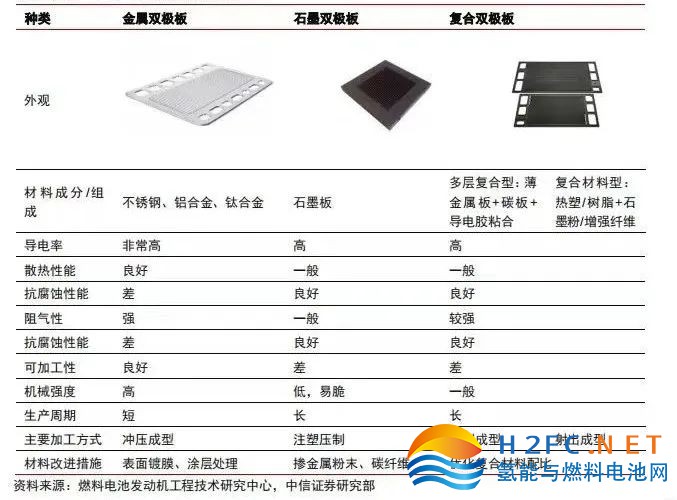 在保持一定機械強度和良好阻氣作用的前提下,雙極板厚度應盡可能地薄,以減少對電流和熱的傳導阻力。目前市場上氫燃料電池的雙極板材料有石墨、金屬和復合材料三類。