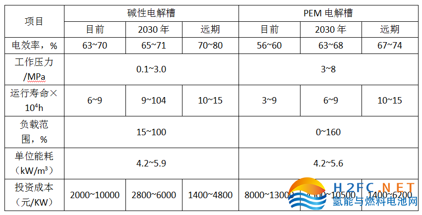表1 堿性電解與 PEM 電解制氫技術(shù)經(jīng)濟指標(biāo)對比