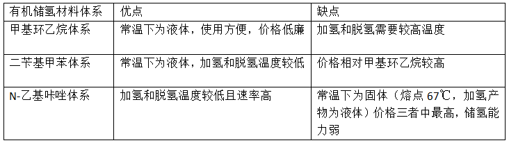 有機液態(tài)儲氫的重點在于有機物儲氫介質(zhì)的選擇,儲氫介質(zhì)的性能指標包括儲氫性能、常溫下穩(wěn)定為液態(tài)、穩(wěn)定不易揮發(fā)、脫氫環(huán)節(jié)中不污染氫氣、低毒或無毒、循環(huán)次數(shù)多、成本較低等。