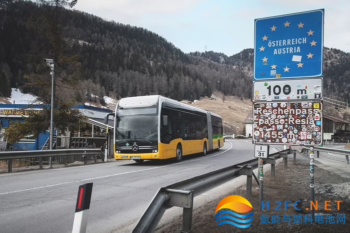 博爾扎諾是冬季試運(yùn)行的理想目的地。博爾扎諾南高速公路交匯處就有一個(gè)公共加氫站,另一個(gè)加氫站位于博爾扎諾的Sasa運(yùn)輸公司的倉庫,它擁有歐洲最好的氫氣基礎(chǔ)設(shè)施之一。這里的氫完全來自可再生能源:主要是利用水力發(fā)電進(jìn)行電解水制氫。周圍陡峭的山口和高海拔為燃料電池系統(tǒng)的海拔測試以及在具有挑戰(zhàn)性的地形和低溫下的進(jìn)一步測試提供了理想的條件。