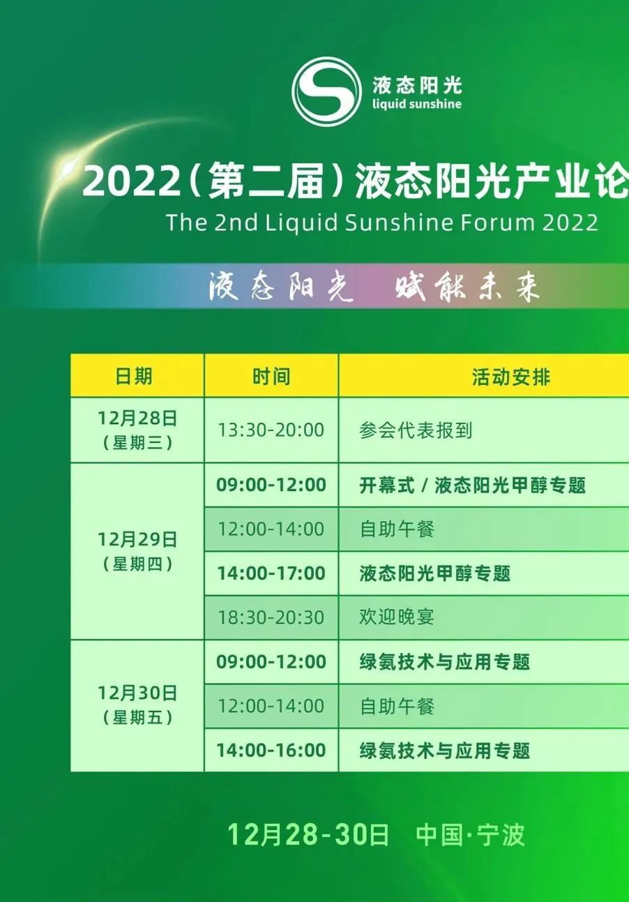 因此,由DT新材料主辦的2022(第二屆)液態(tài)陽光產(chǎn)業(yè)論壇將在中國·寧波召開,時間12月28-30日。本屆會議將圍繞 “液態(tài)陽光,助力低碳生態(tài)”為主題,以學(xué)術(shù)交流及產(chǎn)學(xué)研一體化發(fā)展為重點,針對綠色能源產(chǎn)業(yè)綠色發(fā)展中的液態(tài)陽光關(guān)鍵科學(xué)問題及技術(shù)挑戰(zhàn),旨在探討國內(nèi)外該領(lǐng)域的研究最新進(jìn)展和未來發(fā)展方向,探索研究液態(tài)陽光甲醇、綠氨、氨氫能源、關(guān)鍵催化劑、甲醇重整制氫和清潔電力能源的關(guān)鍵挑戰(zhàn)與突破。