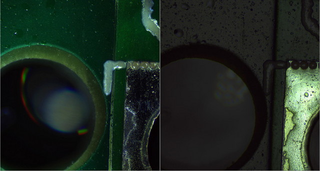 在金相領域,暗場觀察通常搭配明場觀察使用,來呈現明場觀察下無法發現的氣孔、凸起、劃痕、灰塵等瑕疵,比如檢查芯片焊點等芯片檢查工作。