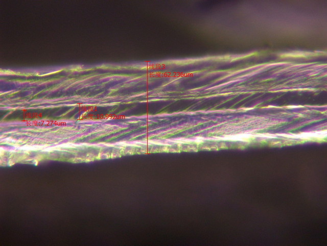 在一些孔隙率差異或折射率梯度的聚合物和陶瓷薄片,比如薄膜、光纖中,使用明場觀察會有邊緣模糊的問題,導致尺寸測量存在不準確的問題,使用暗場觀察可以更準確呈現邊緣,使尺寸測量更加準確。