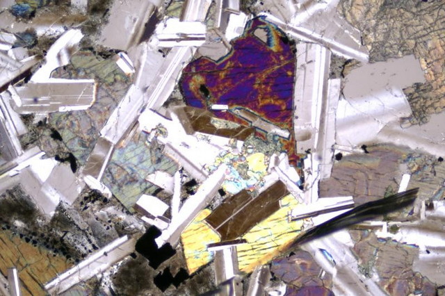 需要補充的是,正交偏光下不一定出現五顏六色的干涉色,初級干涉色是暗灰到黑白的,典型代表食鹽。使用補償器可以改變干涉色。