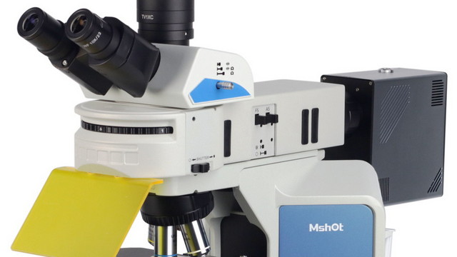 ①熒光光源:用于提供熒光激發光,核心規格是光譜特征波長,要求能覆蓋染料的激發特征波長,并提供足夠光強。汞燈、氙燈、金屬鹵素燈、LED熒光光源都能滿足核心規格,目前在開關性能、使用壽命、光強可控性和免維護等方面比較有優勢的是LED熒光光源,如明美的MG-120四通道光源。