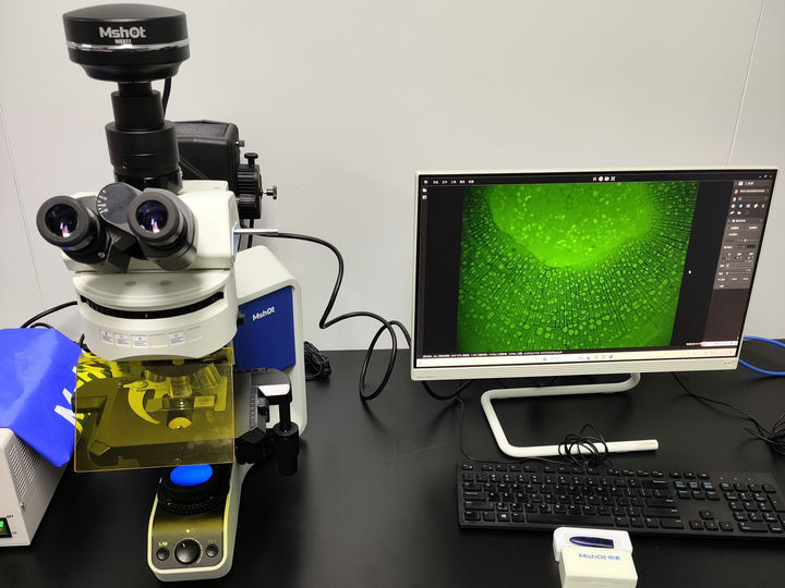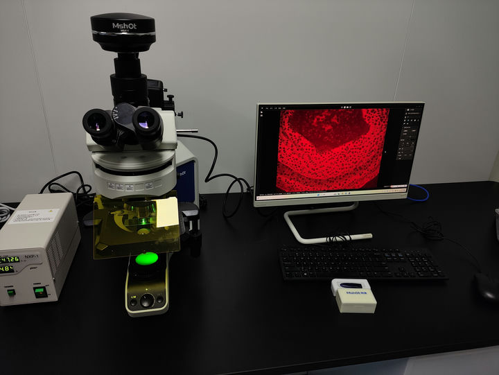 熒光原位雜交技術(shù),其原理基于堿基互補(bǔ)配對(duì)的原則,通過對(duì)組織樣品特殊處理使帶有熒光物質(zhì)的探針與目標(biāo)DNA接合,最后用MF43-N等正置熒光顯微鏡高倍放大直接觀察目標(biāo)DNA所在的位置,該技術(shù)廣泛應(yīng)用于腫瘤病理診斷、基因定位、染色體研究等領(lǐng)域。