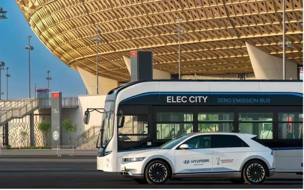 今年4月份,韓國的現代汽車宣布正式成為“2022 FIFA世界杯(FIFA World Cup 2022™)”官方贊助商。作為國際足聯世界杯的可持續發展合作伙伴及贊助商,現代汽車在世界杯期間為球員、貴賓和賽事官員提供422輛乘用車和170輛大巴。在這共計592輛官方用車里,超過一半的乘用車和部分商用車采用環保車型,其中包括氫燃料電池巴士Elec City。這也是世界杯官方車隊中首次出現氫燃料汽車,Elec City巴士利用氫氣和空氣中氧氣發生化學反應生成電力,并以此電力作為驅動引擎的動力,最終排放物只有水,是真正的“零排放”車型。