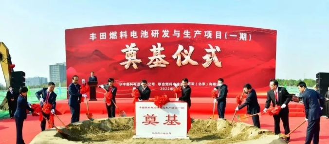 根據報道,2022年10月24日,豐田燃料電池研發與生產項目(一期)奠基儀式在北京市經濟技術開發區隆重舉行。此項目主體由華豐燃料電池有限公司(簡稱:FCTS)及聯合燃料電池系統研發(北京)有限公司(簡稱:FCRD)構成,總投資額約80億日元,將建設燃料電池生產線、檢測線和研發中心,生產燃料電池系統產品,并進行燃料電池系統相關研發工作。