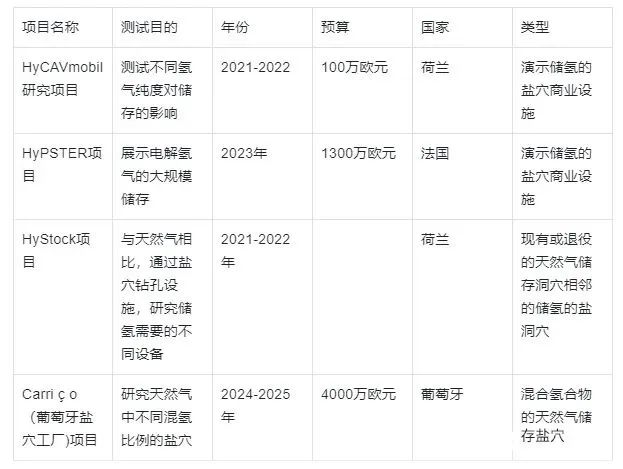 項(xiàng)目:沒(méi)有正在運(yùn)行的商業(yè)含水層儲(chǔ)存氫氣,且含水層中的純氫儲(chǔ)存尚未經(jīng)過(guò)測(cè)試。但是有一些相類似的項(xiàng)目也值得列出,在20世紀(jì)70年代,在Lobodice(捷克共和國(guó)),Engelbostel和Ketzin(德國(guó))和Beynes(法國(guó)),使用了鹽水含水層來(lái)儲(chǔ)存城鎮(zhèn)天然氣。RINGS(向存儲(chǔ)設(shè)施中注入新氣體的研究)項(xiàng)目正在分析向法國(guó)ter é ga含水層中注入的天然氣流中添加氫氣和生物甲烷的影響。