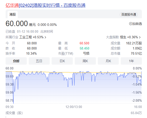 OFweek氫能注意到,港股億華通股價(jià)開盤后一度下跌至58.45港元,隨后又開始上漲,盤中持續(xù)震蕩,最終收盤價(jià)格依然為60港元,既未破發(fā)也未上漲,這在企業(yè)首日上市中并不多見,或也代表了二級(jí)市場對(duì)氫能企業(yè)的看法。