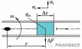 質點m以勻速v在旋轉角速度ω的管道內運動時,根據物體運動的慣性原理,得出公式(4)。