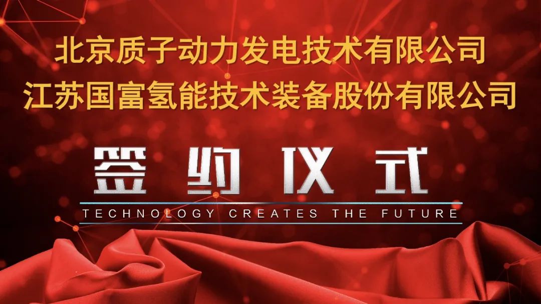 2022年5月9日上午,江蘇國富氫能技術裝備股份有限公司與北京質子動力發電技術有限公司舉行云簽約儀式,共同成立合資公司。國富氫能董事長鄔品芳、質子動力董事長陳國飛出席和見證簽約,雙方企業聯合創始人、高管和核心團隊等共計二十余人分別在北京、上海、山東青島、廣東佛山、寧夏銀川、江蘇徐州和張家港等地參加本次線上活動。