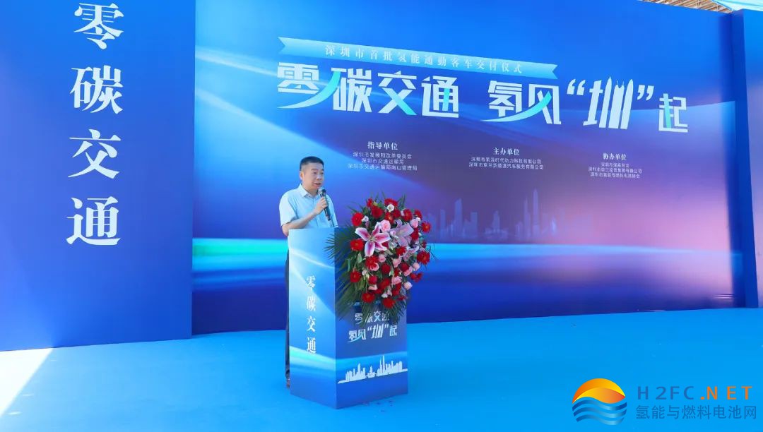 市交通運輸局黨組成員、副局長徐煒對深圳市首批氫能通勤車正式交付表示祝賀。他表示,氫燃料電池在交通領域的應用具有綜合對比優勢,對助力深圳零碳交通高質量發展,高品質完成氫燃料電池示范城市推廣任務,具有重要意義。