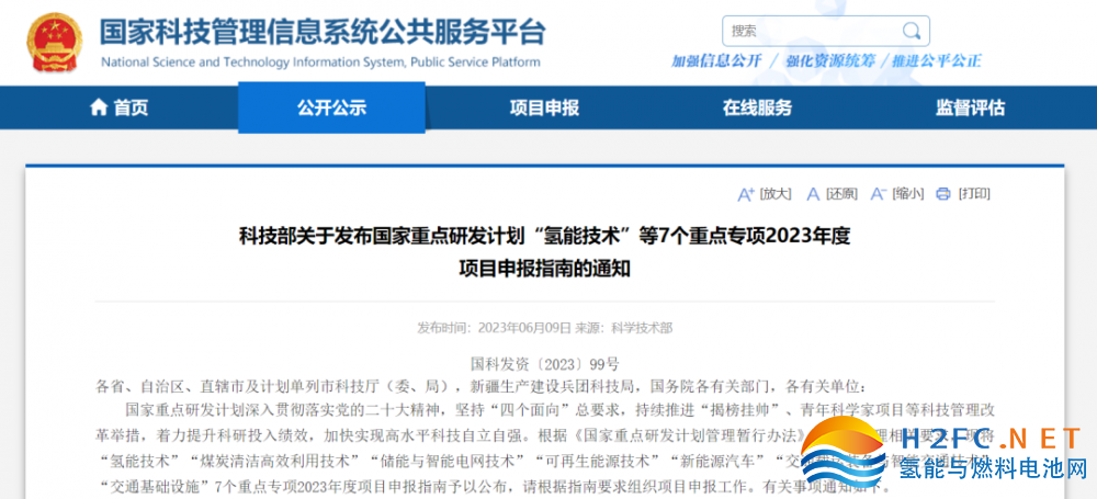 根據《國家重點研發計劃管理暫行辦法》和組織管理相關要求,將“氫能技術”“煤炭清潔高效利用技術”“儲能與智能電網技術”“可再生能源技術”“新能源汽車”“交通載運裝備與智能交通技術”“交通基礎設施”7個重點專項2023年度項目申報指南予以公布,請根據指南要求組織項目申報工作。