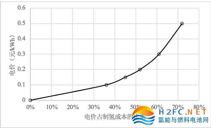 圖1 電價占制氫成本的比重