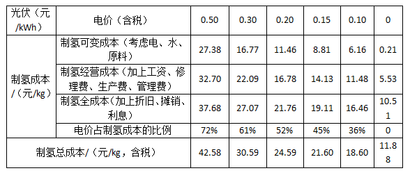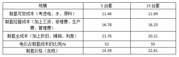 表5 電解水制氫的成本