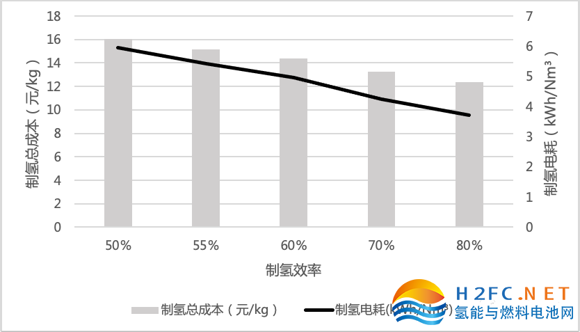 圖4 制氫效率對制氫總成本的影響